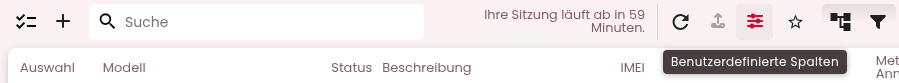 Sollte in Ihrer Geräteliste die Spalte "Status" nicht angezeigt werden, können Sie dies in der Gerätelisten-Ansicht mit der Funktion "Benutzerdefinierte Spalten" anpassen: